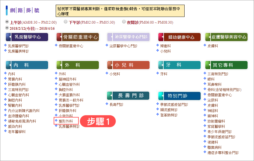 步驟1:點選「外科」類別中的「整形外科」項目。
