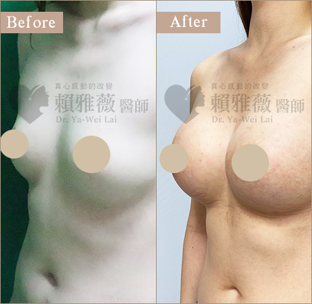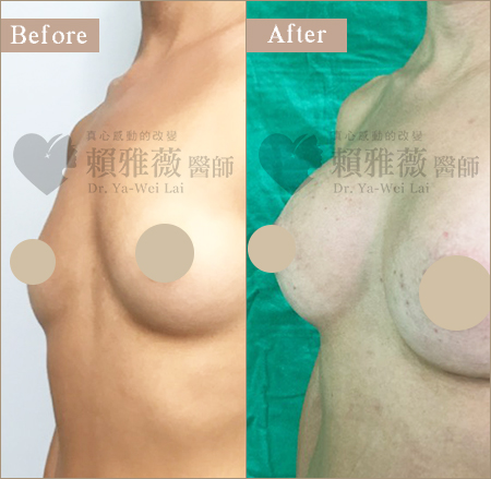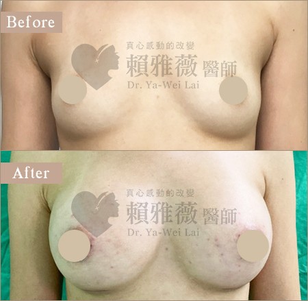 - 賴雅薇醫師隆乳手術後,大部份使用德國進口的組織凝膠,不需拆線,手術後隔天可以直接淋浴。