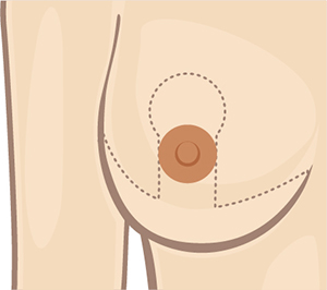 改良自傳統的倒T字切口縮胸手術,將切口改在乳暈周圍,切除部份皮膚與乳腺,再將乳房往上拉提後固定於胸壁,並配合移動乳頭及乳暈的位置。此法雖然日後可能無法哺乳,卻能夠兼顧提乳與縮胸的需求,避免傳統倒T字切口的垂直疤痕。術後傷口會在乳暈周邊與胸下緣摺線處,適當護理後即可變淡,較不易被看出,但會有因為乳房前方皮膚較緊繃,讓乳型呈現寬扁狀的缺點,堅挺度較為不足。此外,傷口癒合稍慢、恢復期需悉心照顧,也是患者需要注意的部份。